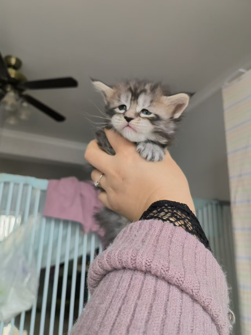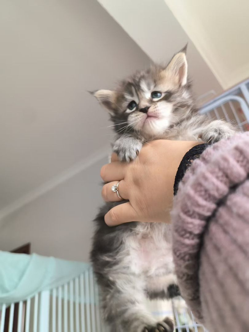 缅因幼猫,呆萌可爱,毛发蓬松,大眼睛温顺粘人,家庭陪伴佳选