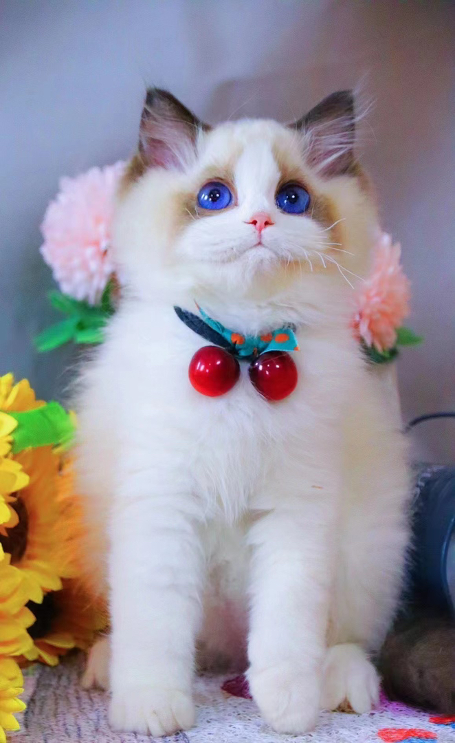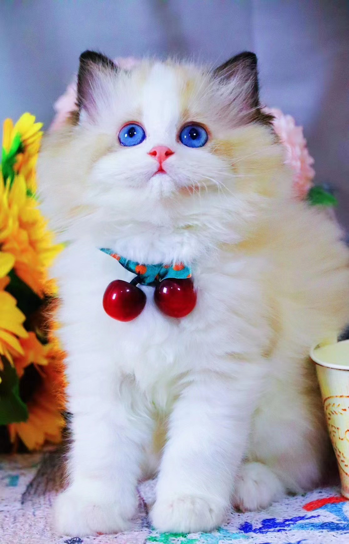 布偶猫(仙女猫),蓝眼甜美品相,蓬松长毛,温顺黏人,理想家养伴侣