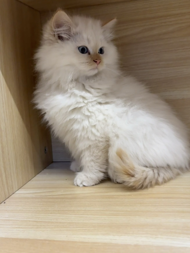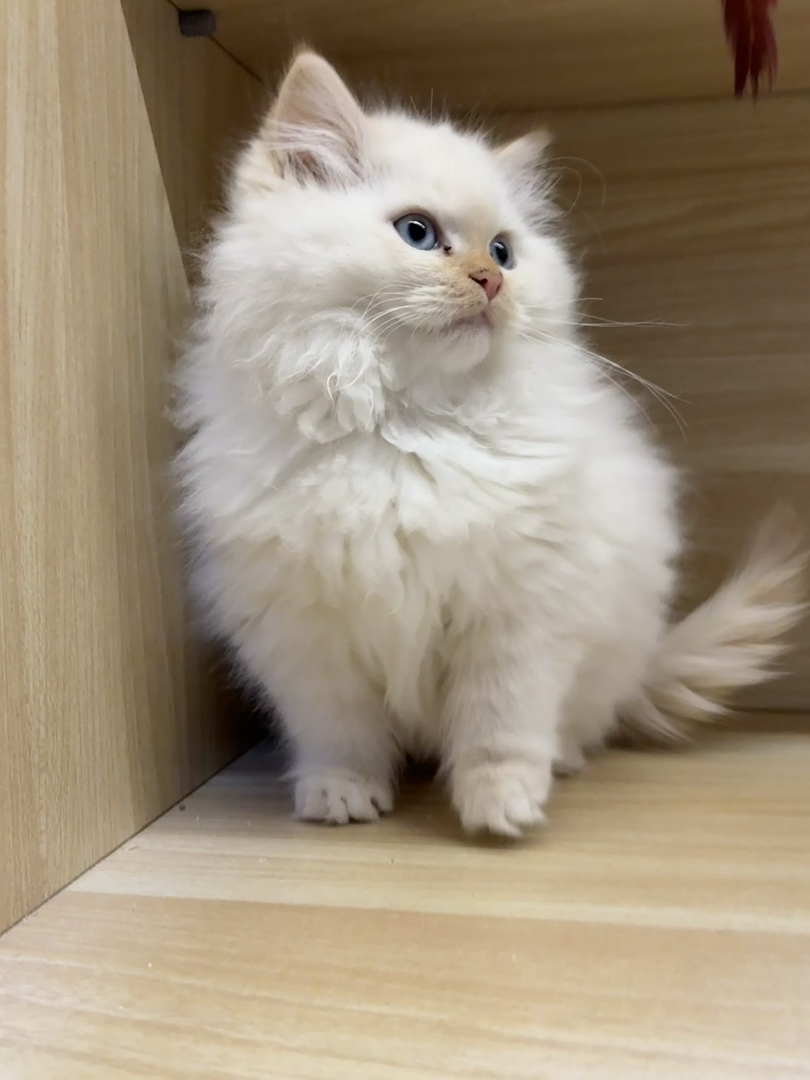 火焰布偶幼猫,长毛蓬松,蓝眼澄澈,品相甜美,温顺粘人,家庭萌宠佳选