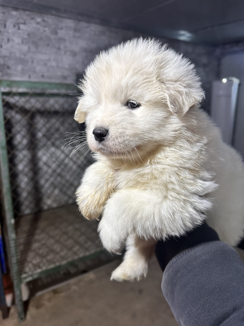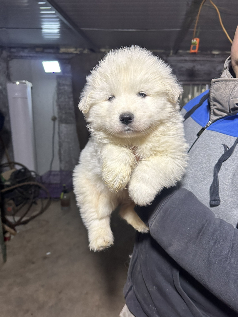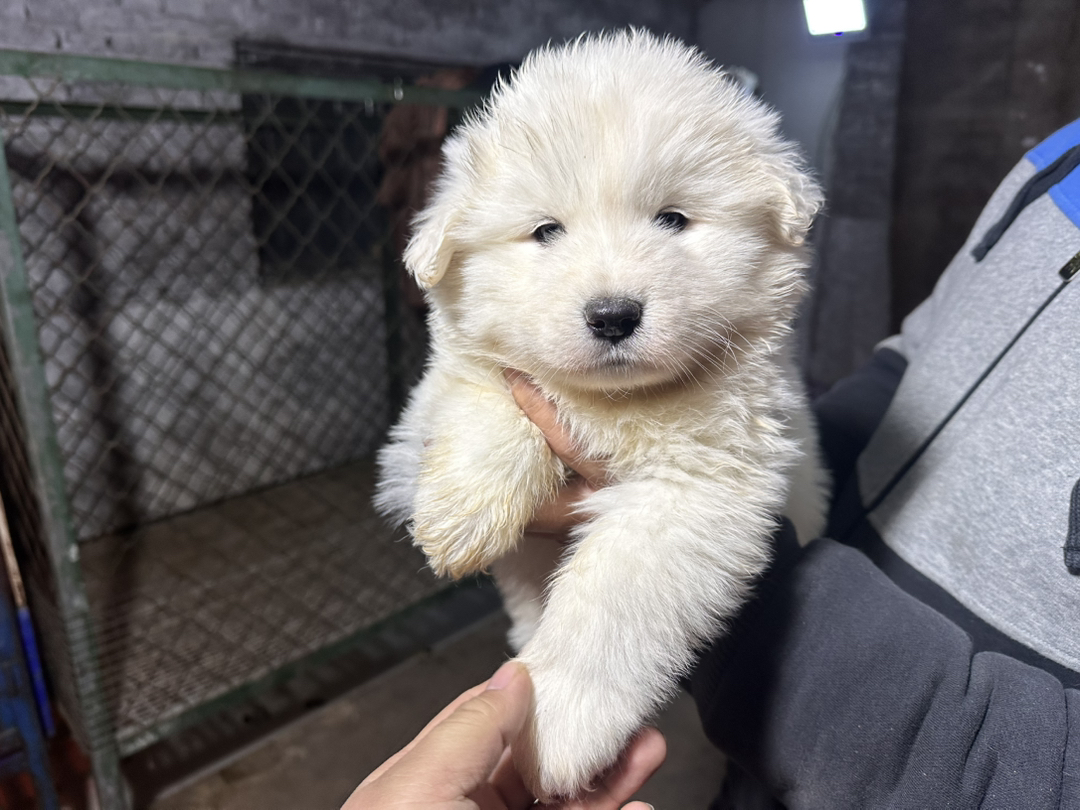原生态萨摩耶幼犬,微笑天使,蓬松白毛圆润可爱,温顺活泼适合家庭陪伴
