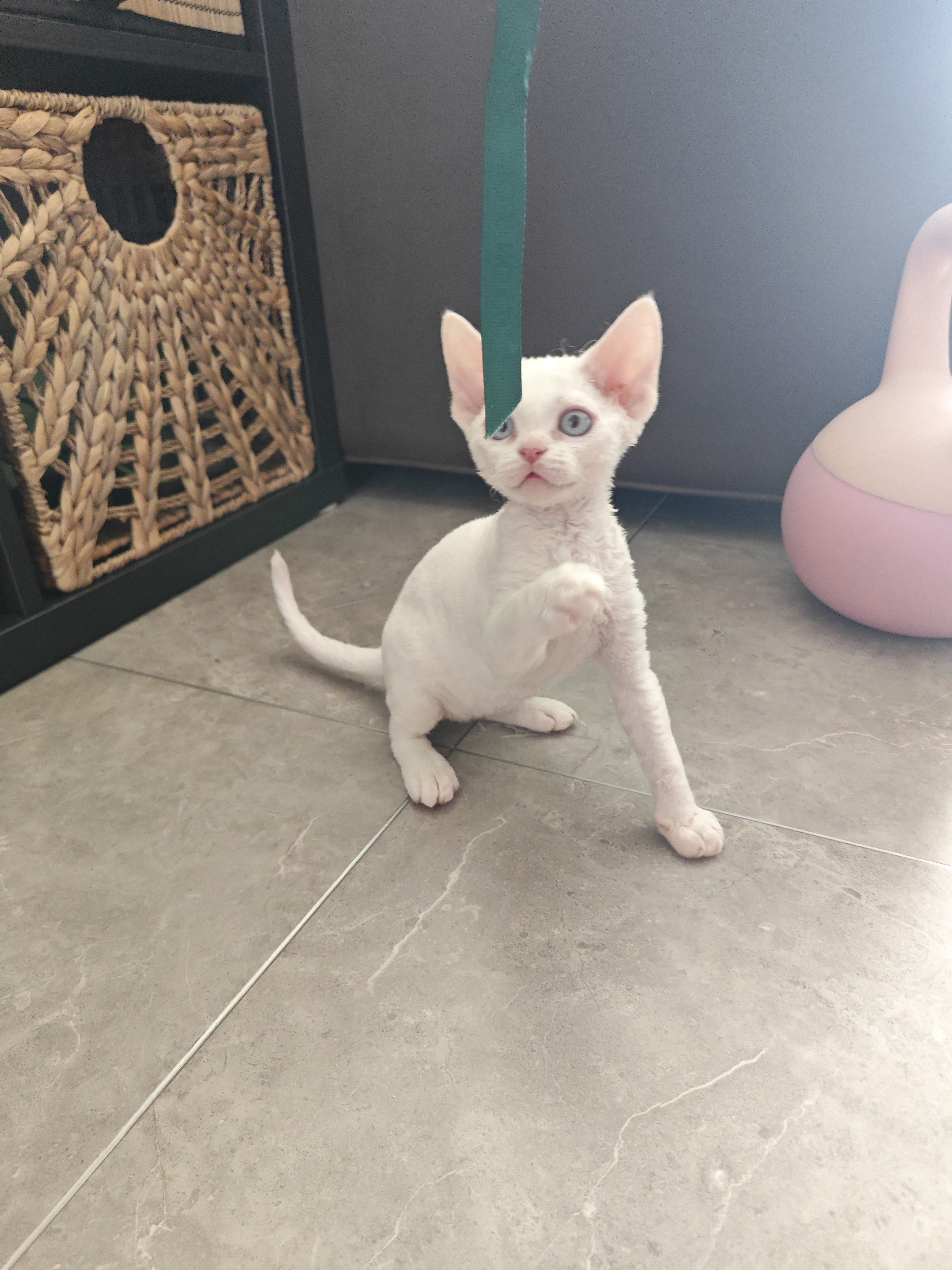 58天纯白蓝眼德文卷毛妹妹找新家✨ 纯正美血,毛量好、贴脸大耳朵,精灵感拉满~ 性格软萌粘人,会贴贴会撒娇,无病无癣,已做基础护理。 颜值天花板级别,蓝眼睛像蓝宝石一样透亮,纯白毛发光滑干净。 找真心疼爱、不离不弃的铲屎官,非诚勿扰。
