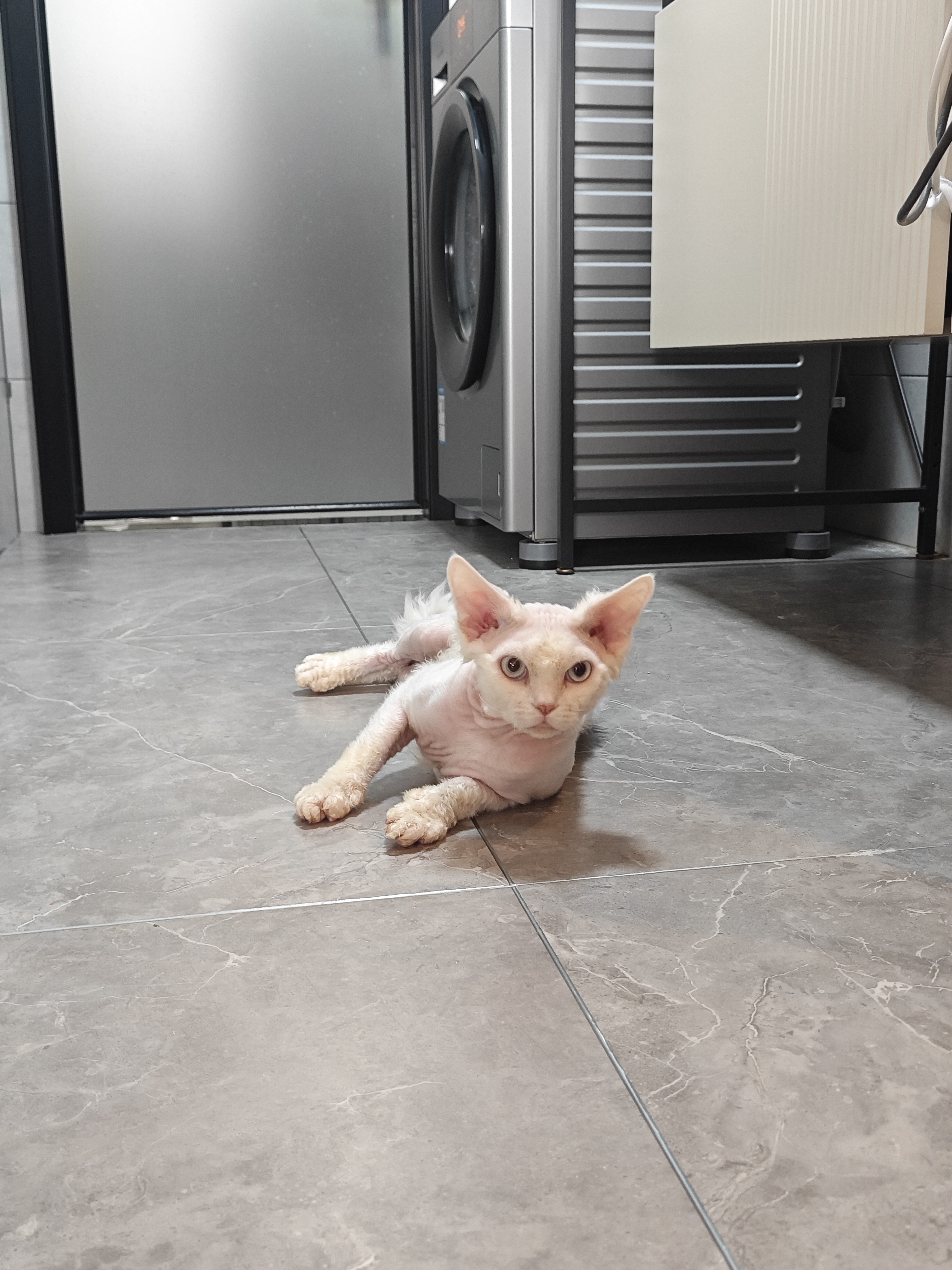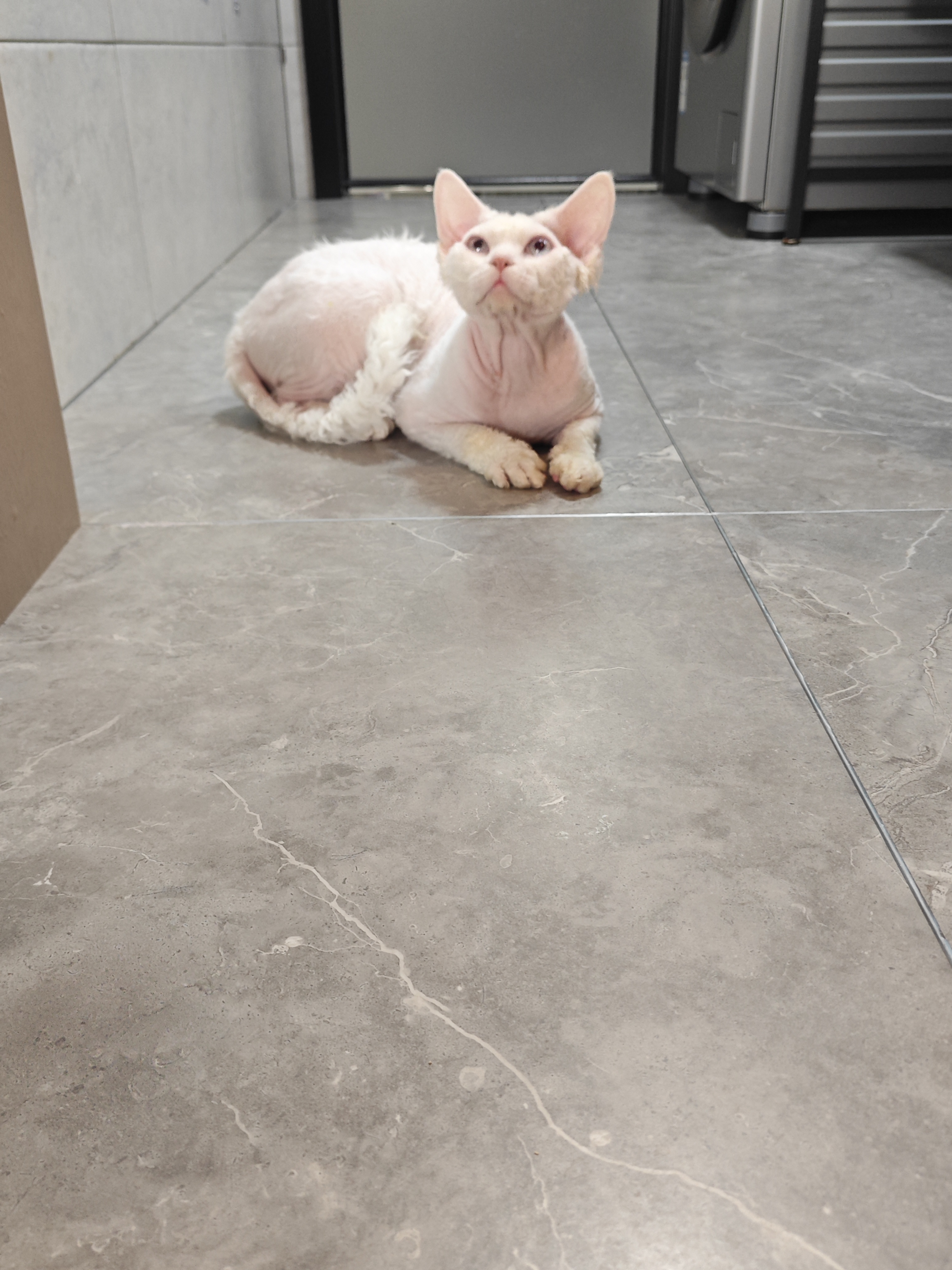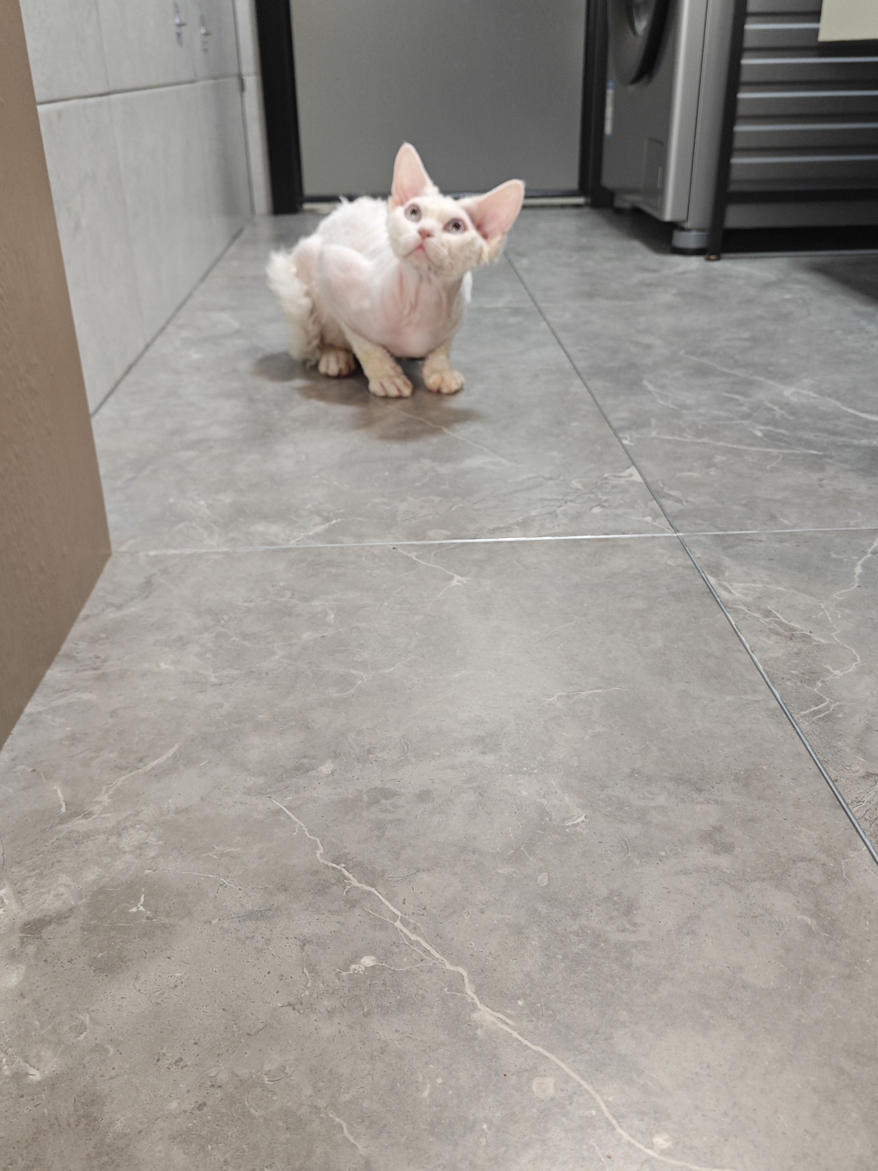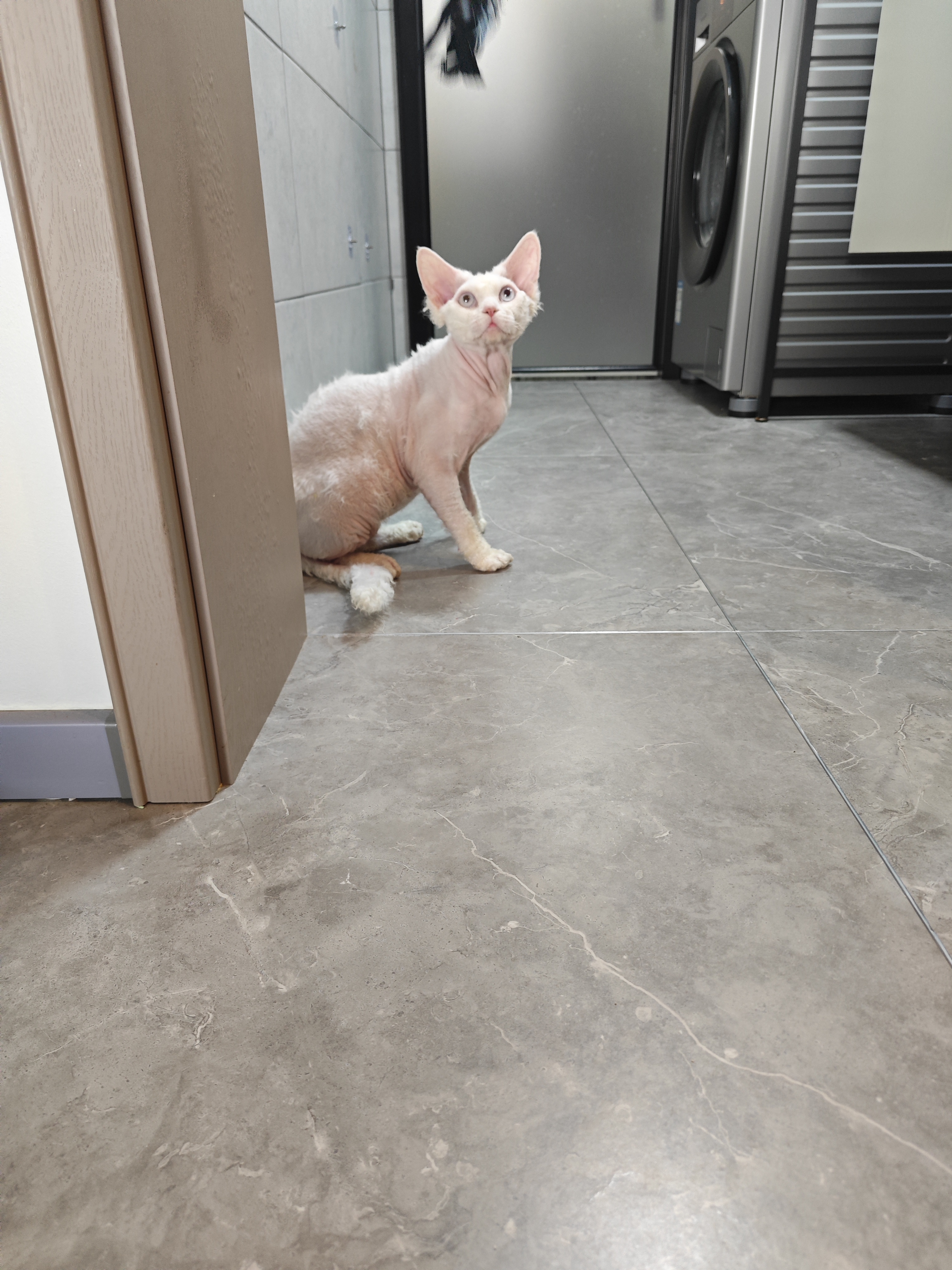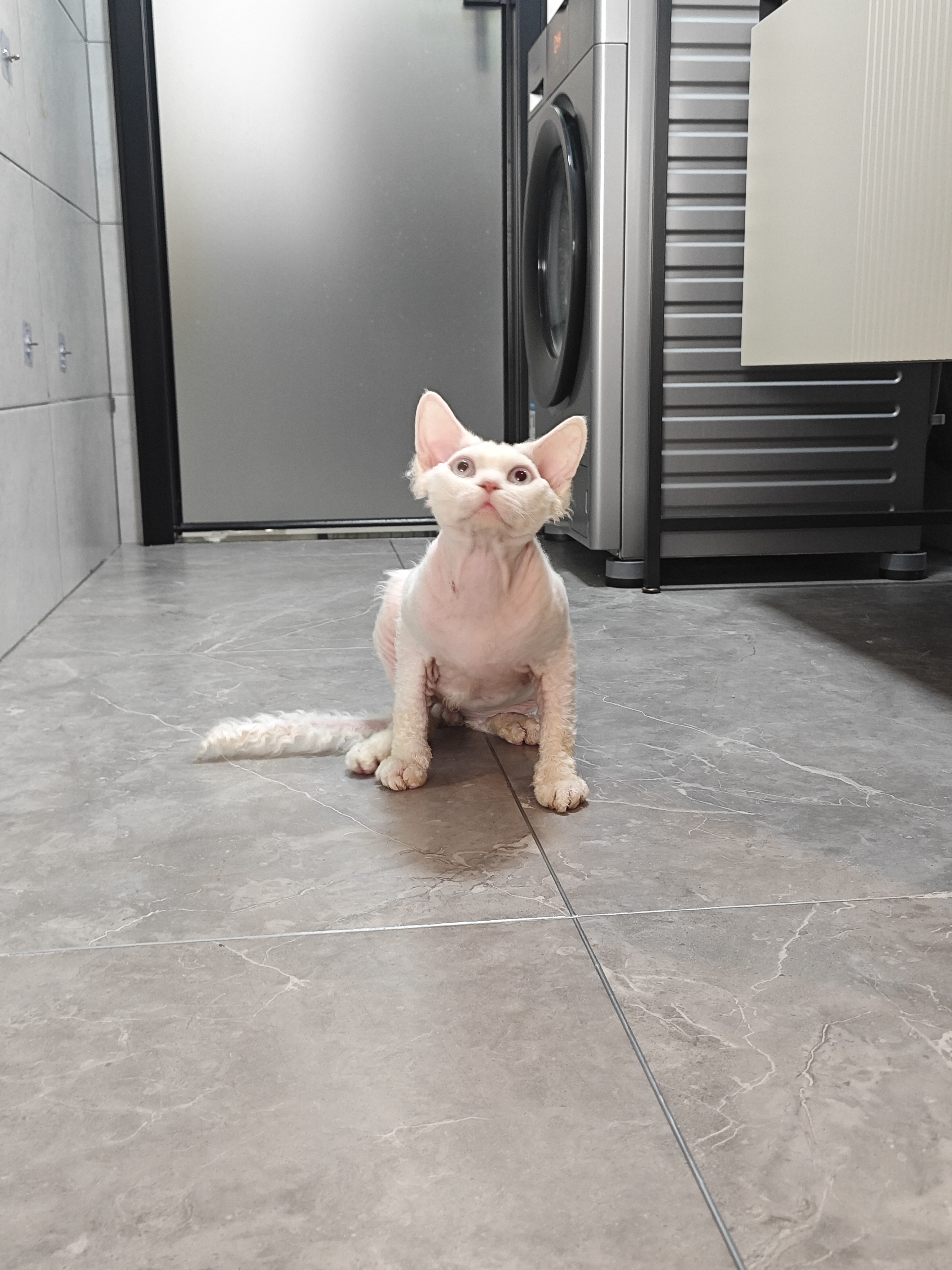 纯白蓝眼德文卷毛猫弟弟,9月龄,三针疫苗,体内外驱虫,找真心买家爱猫人士