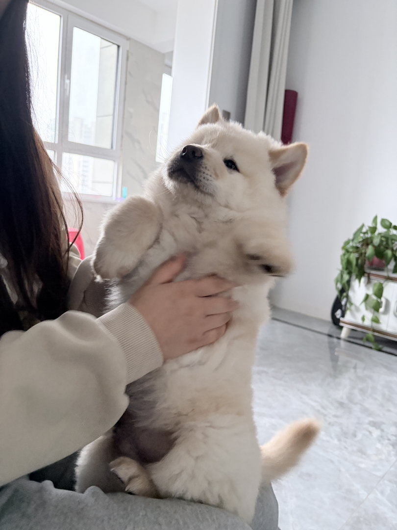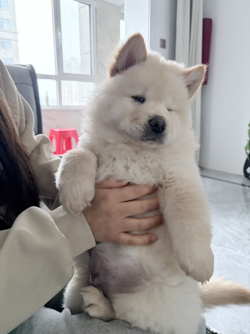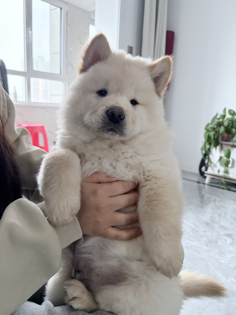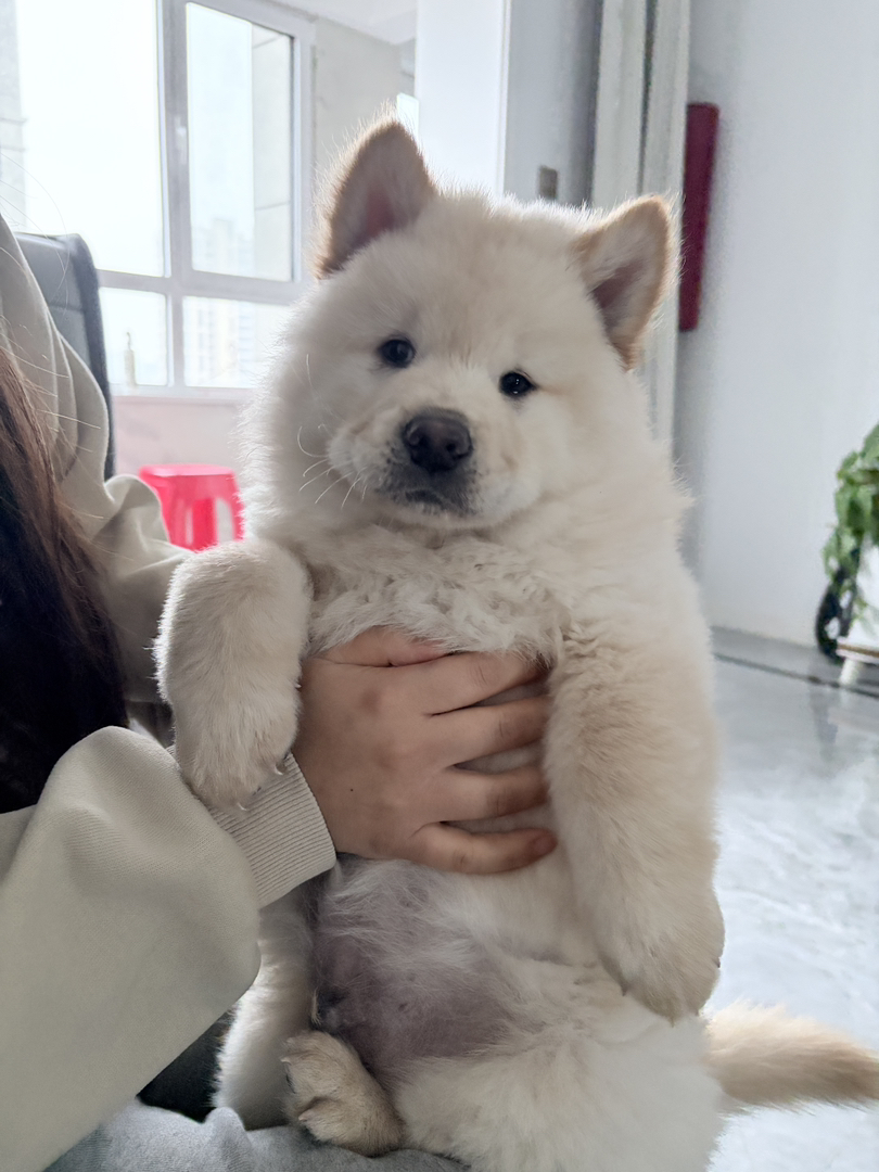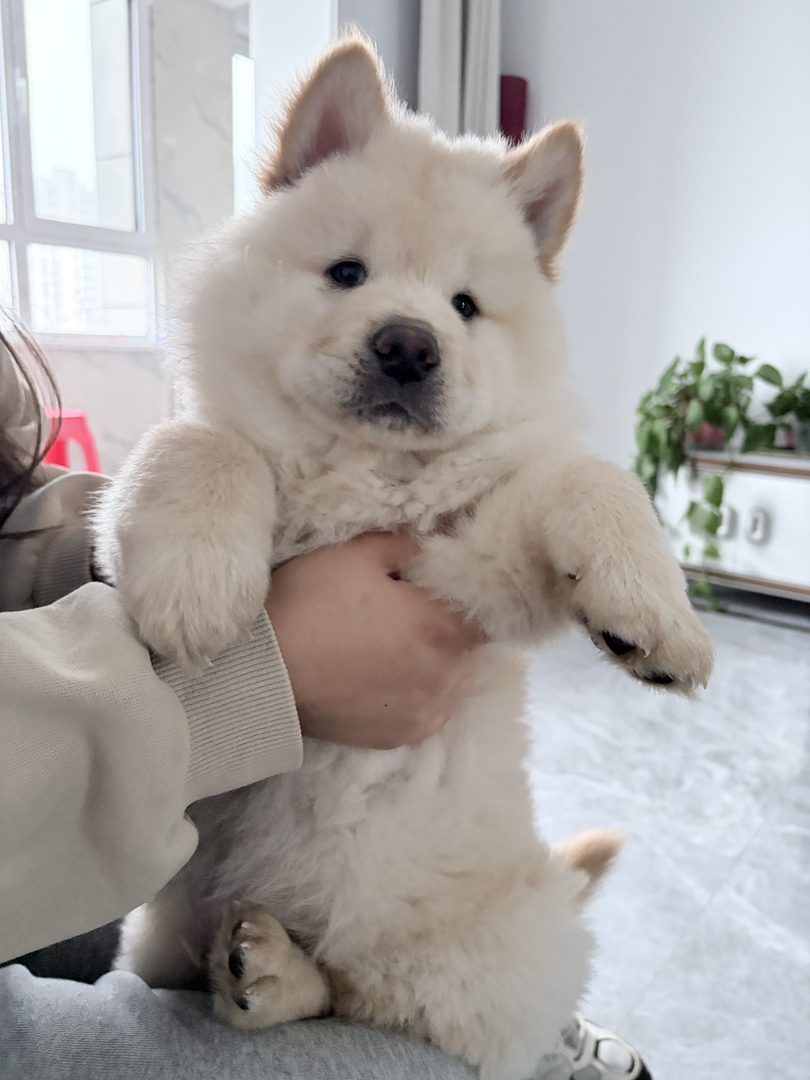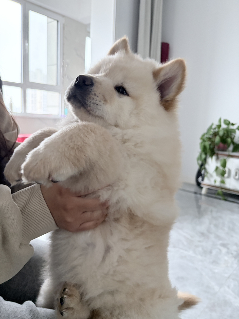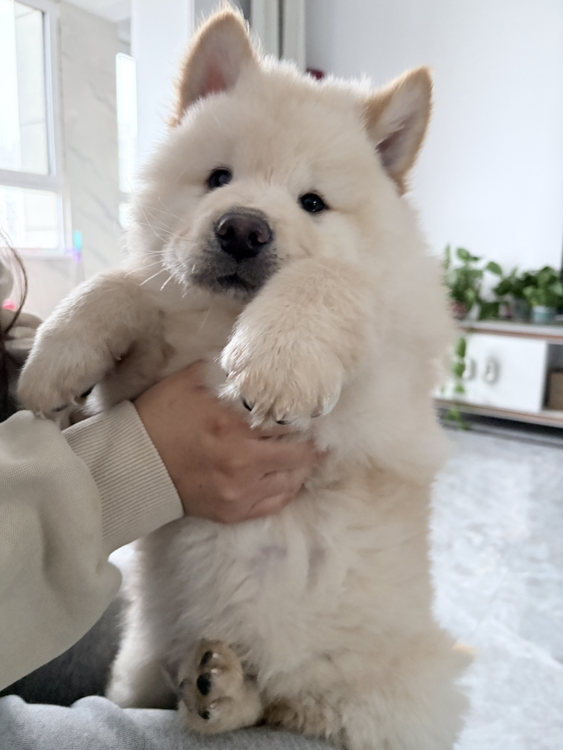 白色松狮弟弟两个月出头11斤,目前两针疫苗