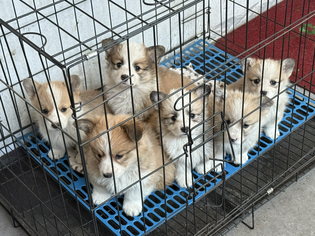 柯基幼犬,棕白双色毛发蓬松,立耳呆萌,活泼温顺,家庭饲养优选