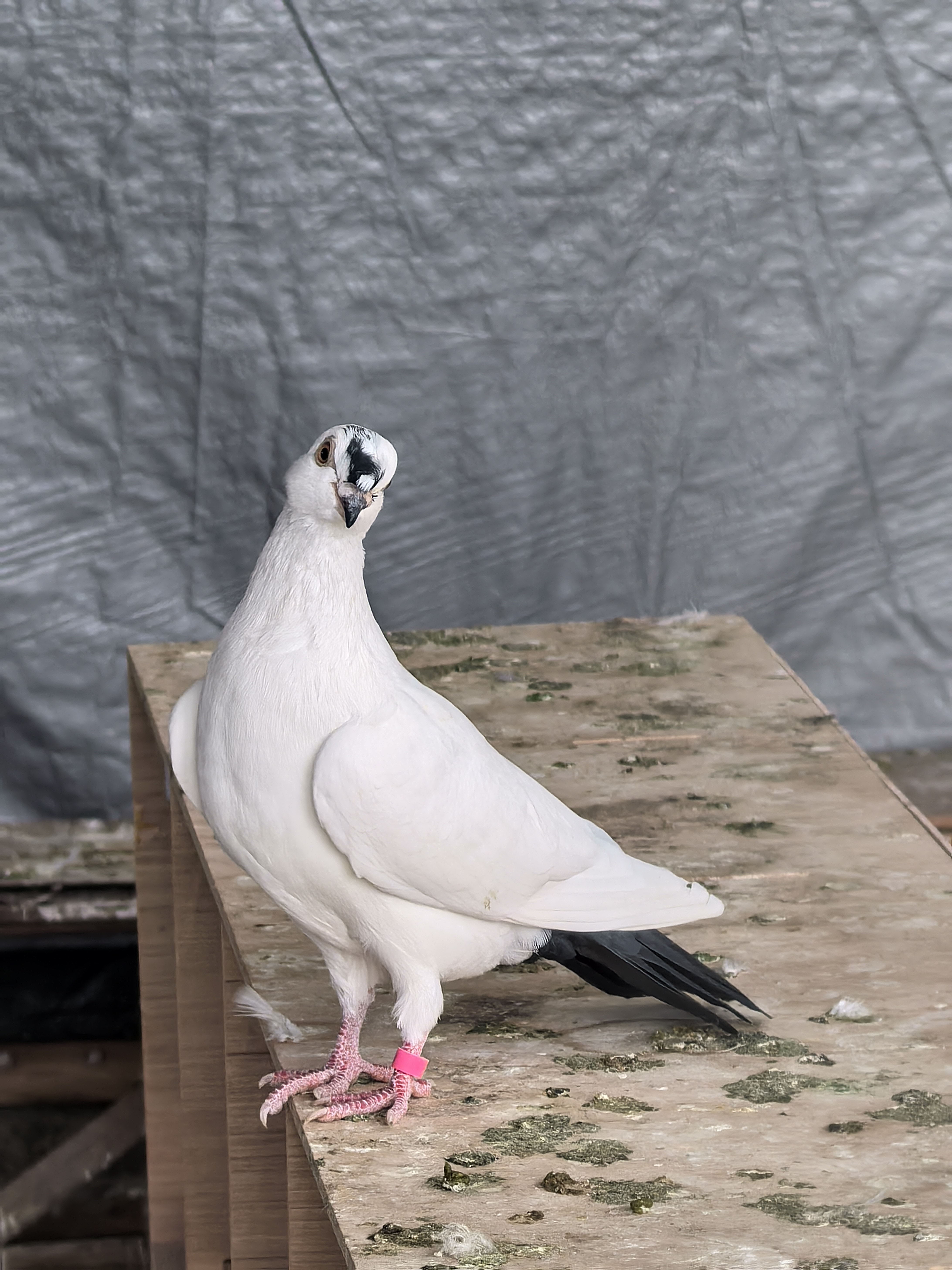 公凤头无杂毛,母平头背上有几根黑毛,已经开始咕咕叫了,回家不久就可配对。