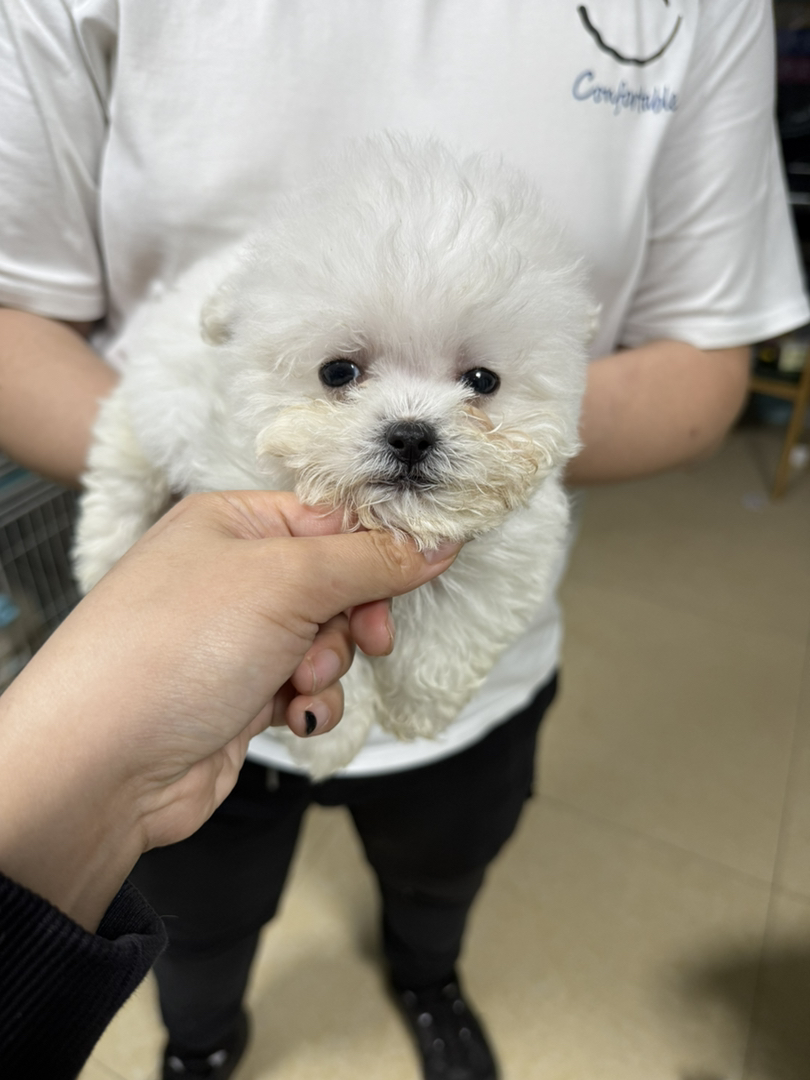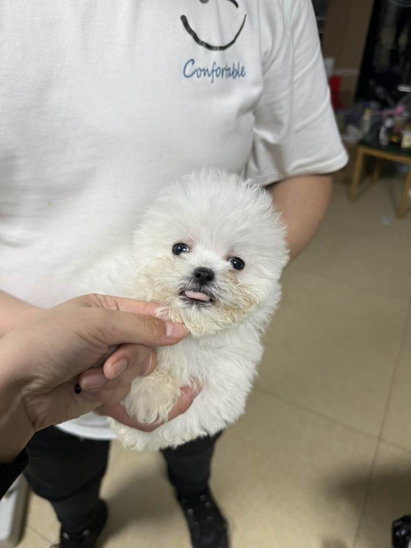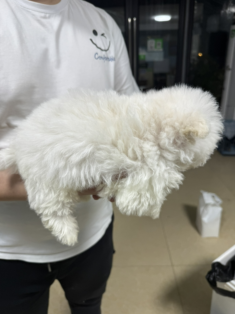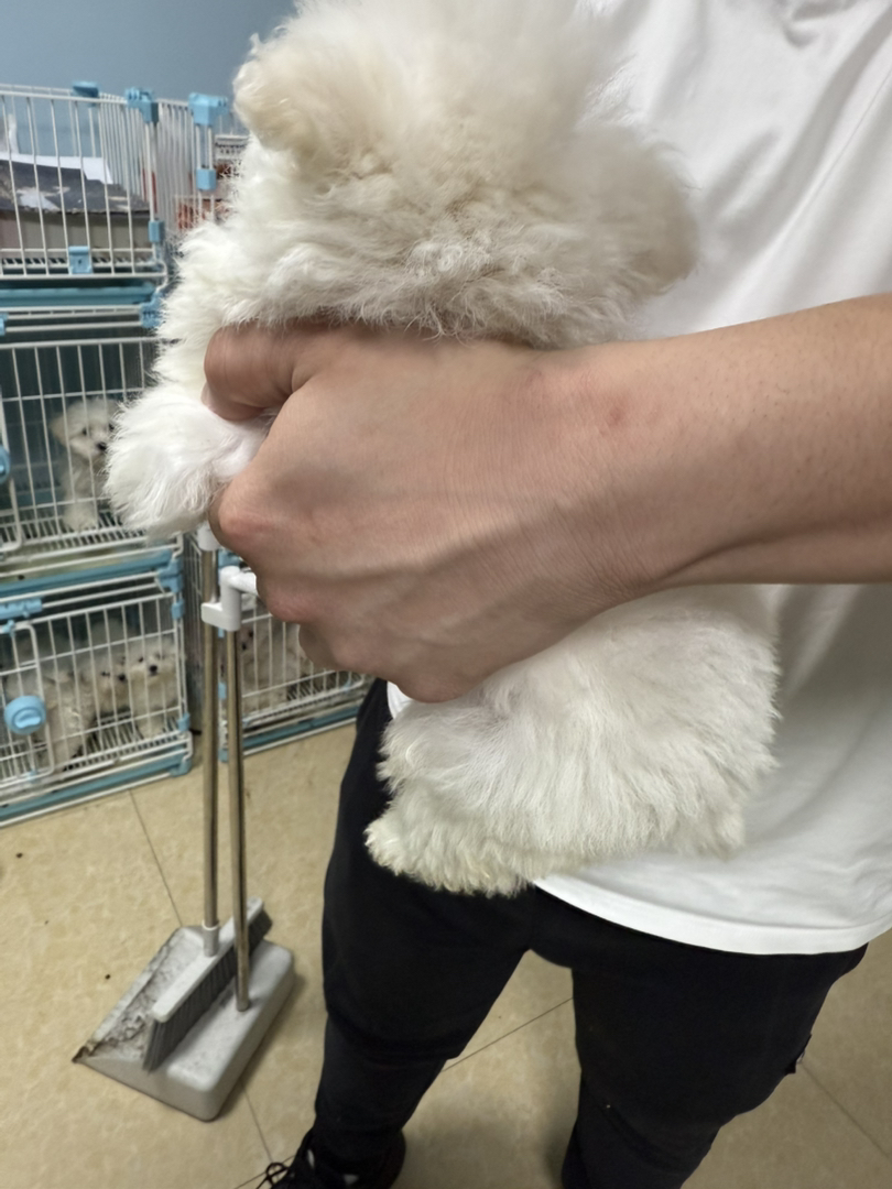 比熊幼犬(棉花糖犬),雪白卷毛呆萌,温顺粘人,绝佳陪伴伴侣