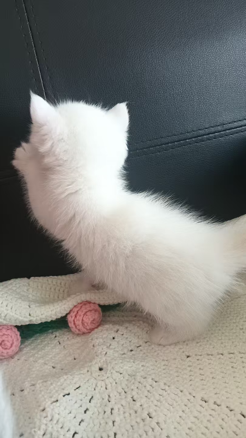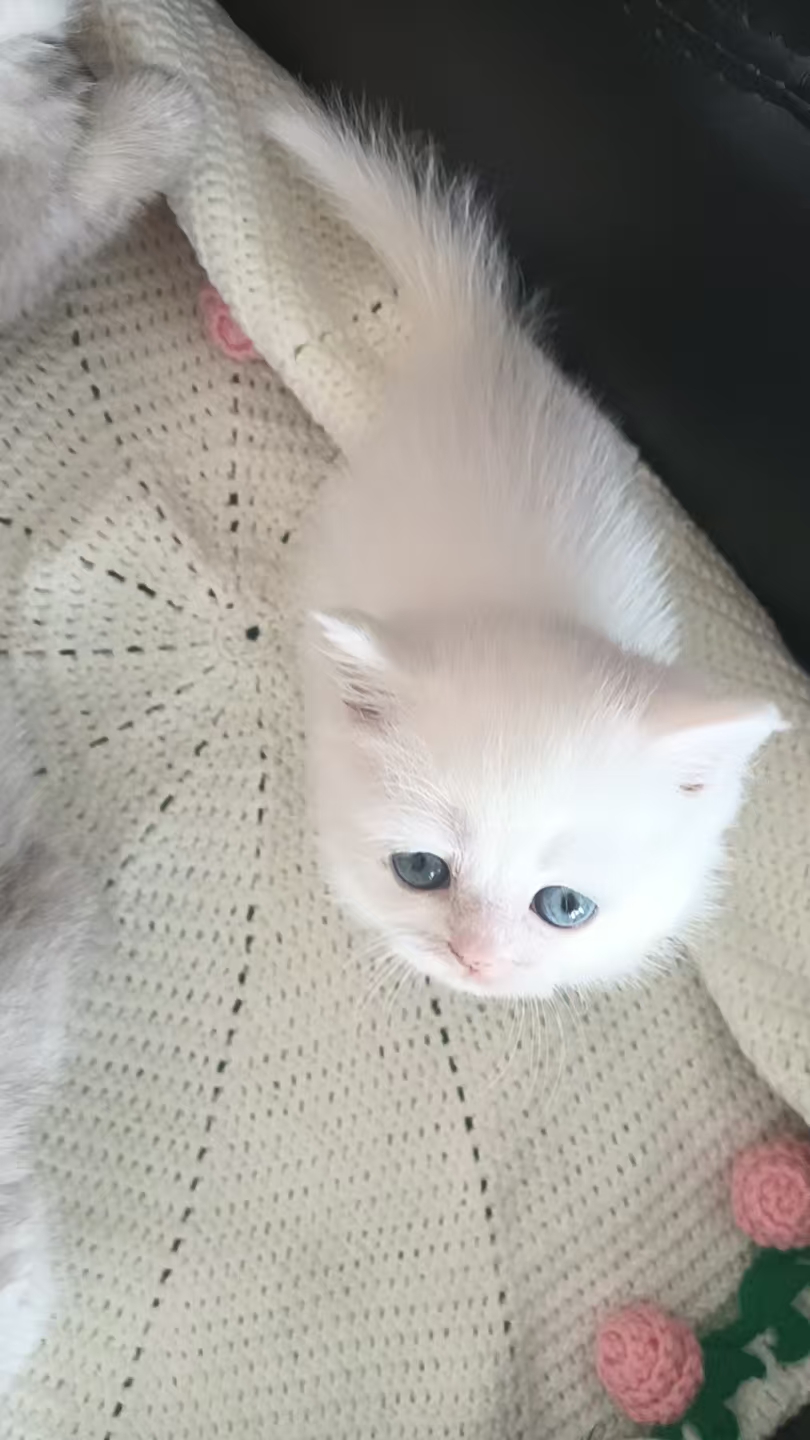 银渐成白色,活泼粘人,干净可爱,会吃猫粮会用猫砂盆希望找一个爱他的家长。