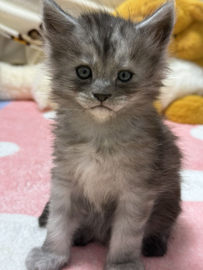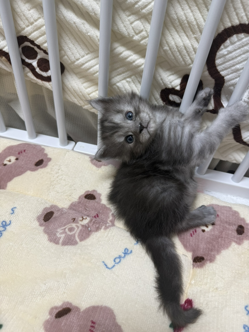 烟灰色五趾猫咪弟弟,2026.3.5出生,猫妈妈是银虎斑缅因,猫爸爸是烟灰色缅因。出生以来健康成长,活泼好动,缅因本身就是温柔的巨人,不用担心不粘人。猫爸爸和猫妈妈都是自家养的,非猫舍。猫宝宝已经会跑会爬会跳,会用猫砂。