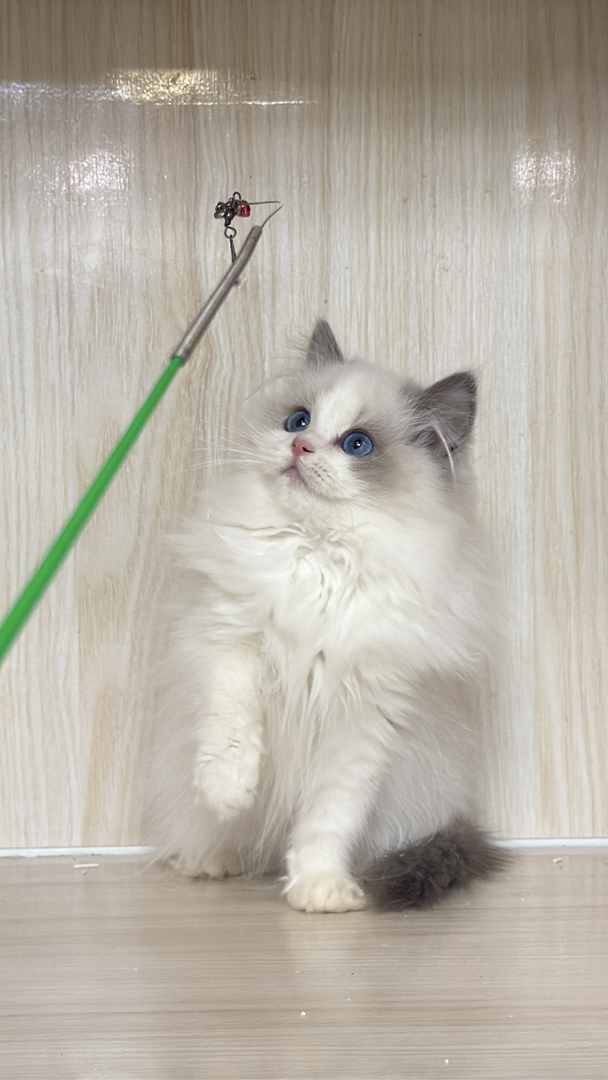 布偶猫(仙女猫),蓝眼双色毛蓬松,活泼粘人温顺,理想家养伴侣