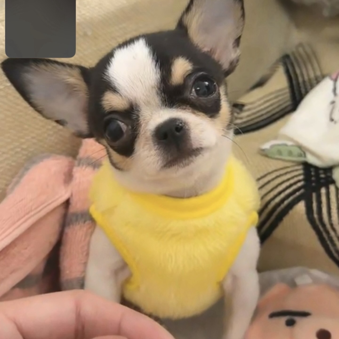 吉娃娃幼犬,三色萌颜大耳灵动,体型娇小活泼粘人,治愈系伴侣 三针疫苗齐全