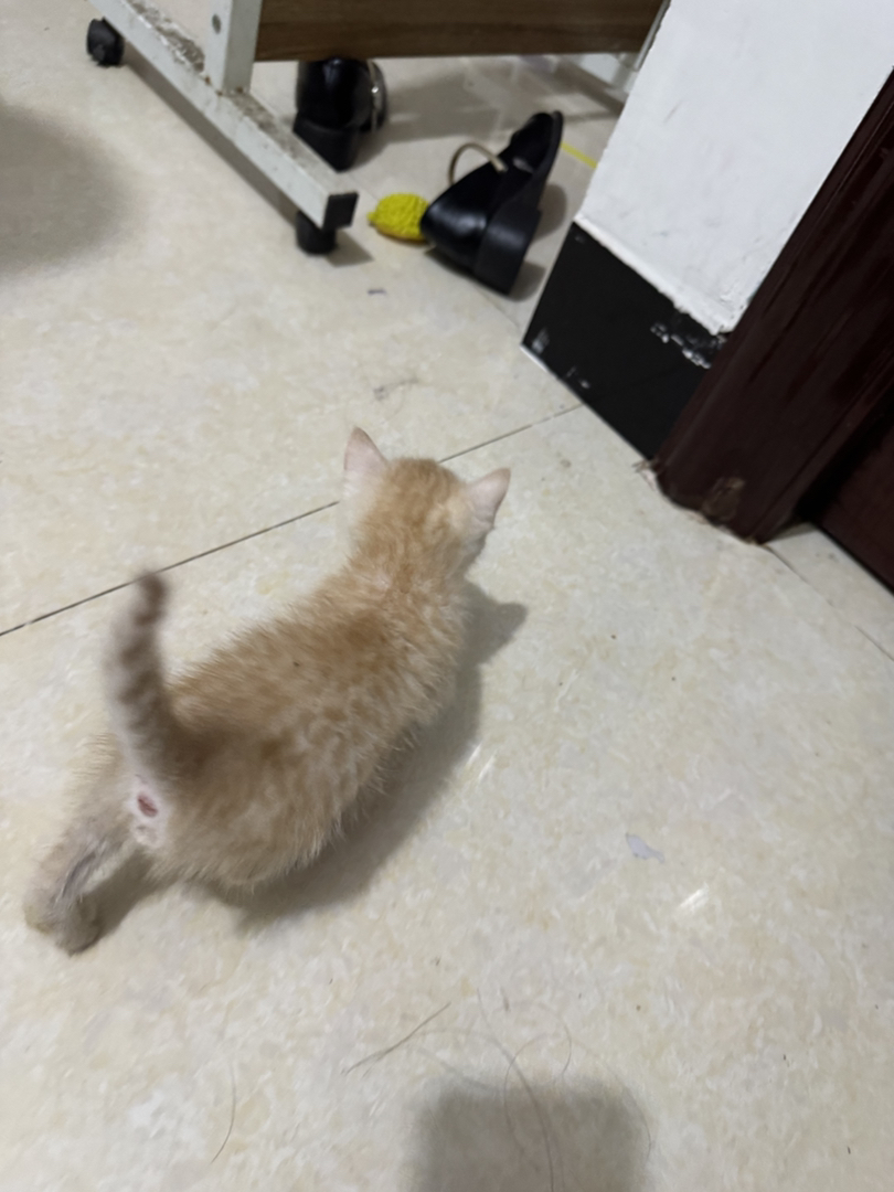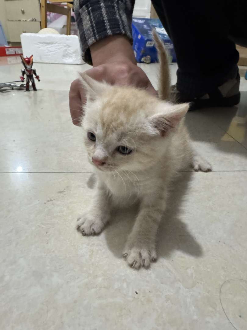 奶油小橘猫一只,英短蓝白和橘猫后代,内外驱虫已做,会吃猫粮会用猫砂