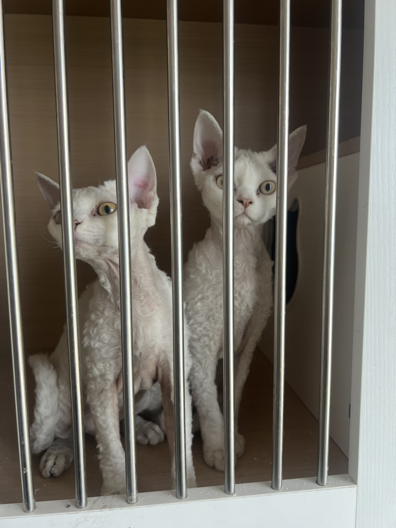 自家繁育,纯白德文弟弟,5个多月,猫爸爸是p血极端脸,带证